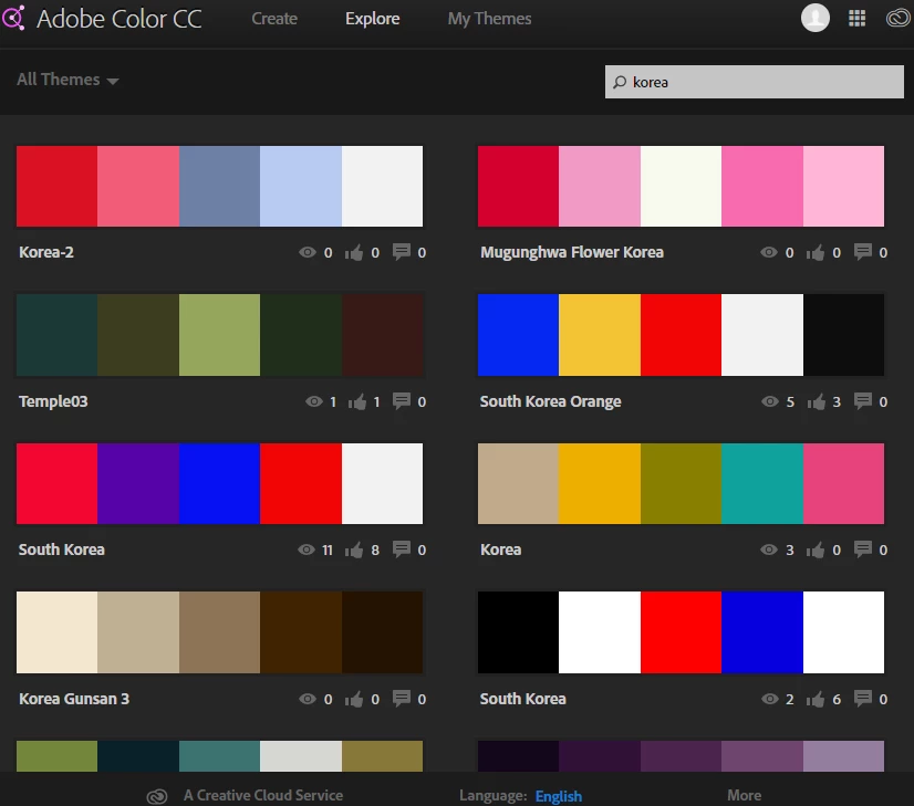 now, I'm studying the color of Korea. If you search Korea in adobe color homepage, you will see a lot of color's palettes.