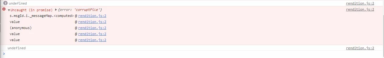 Ocassionally when using the Adobe Embed API, the API will successfully load a PDF and it's annotations, and then throw a "corruptFile" error from rendition.js (see attached screenshot). Rendition.js also console.logs undefined multiple times (also visible in screenshot).