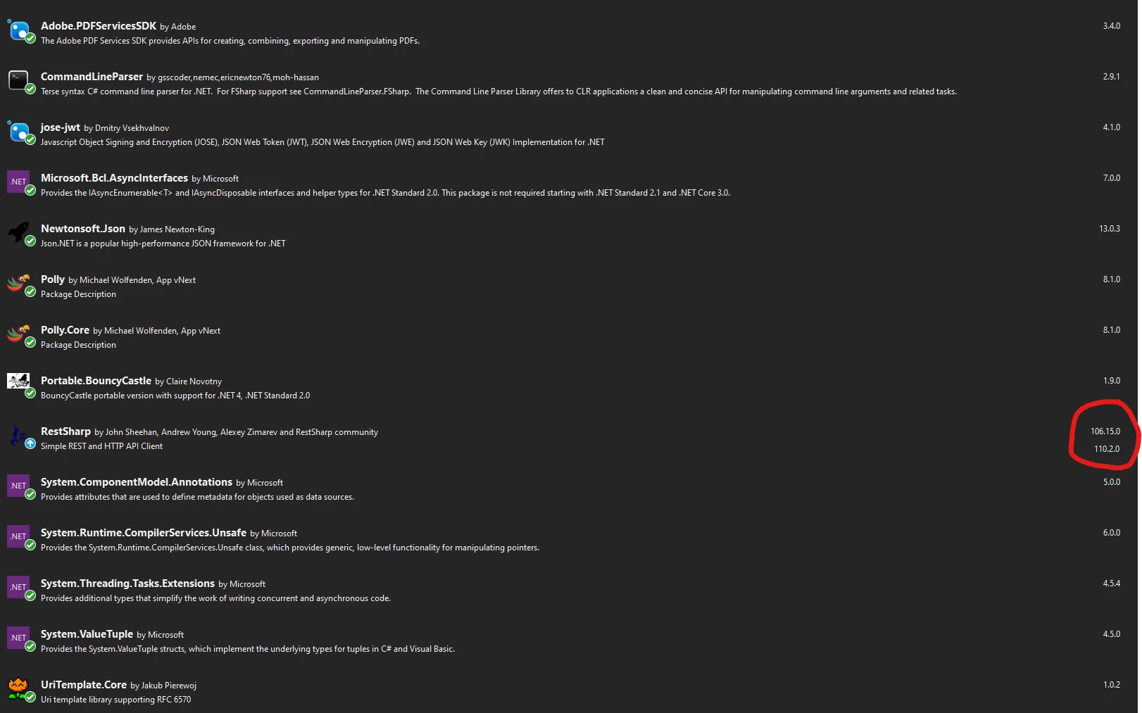 I just wanted to ask when we can expect an updated Adobe.PDFServicesSDK package. Some of the dependencies used there (Polly, RestSharp, etc.) have undergone significant changes. When we update these dependencies, we get error messages when using PDF Services.