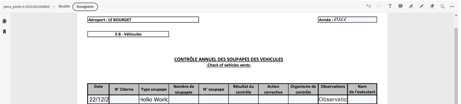 Lorsque j'utilise l'API PDF Embed : je visualise mon PDF et je peux le remplir puis l'enregistrer sur mon serveur.