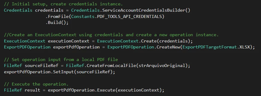 I need to convert PDF files to XLSX by .NET with requests to the Adobe API, but when I make the request, the API gives me the following message: