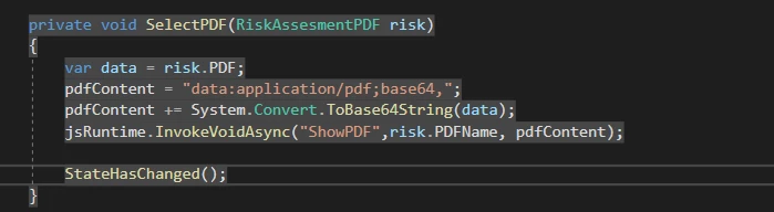 Blazor Adobe PDF Embed API Loading a pdf within a database which is stored in varbinary