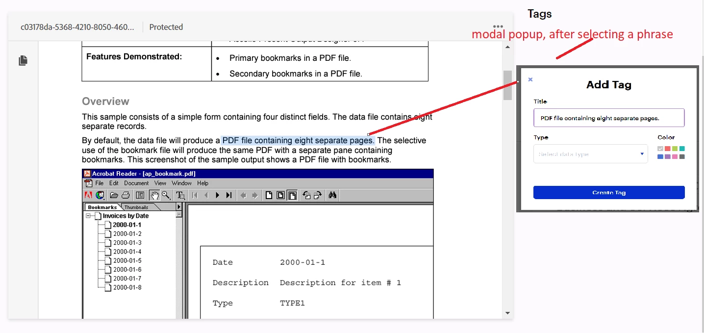 Can I highlight a phrase and call a popup and mark it as tags?