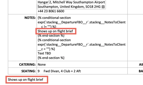 Template file (Word) - Conditional statement is in the NOTES section and again BELOW the table. Compare to the output screenshot of the results.