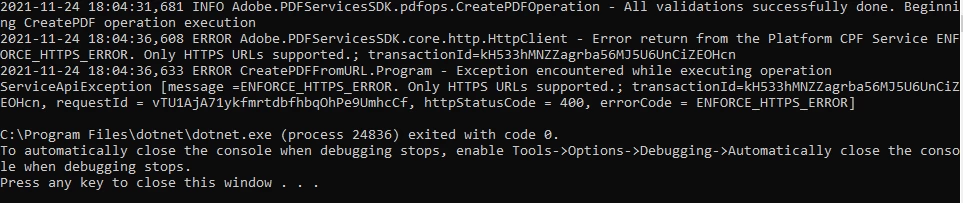I'm trying to use .net sdk to create PDFs using URLs, when I try to convert HTTP site insted of HTTPS I'm getting an exception saying it's only working on HTTPS urls, Is there any workaround or option to enable this to work on HTTP sites as well.