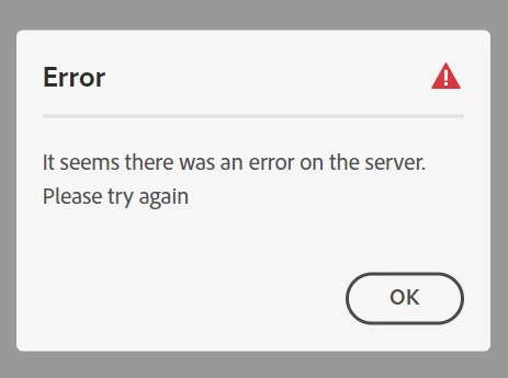 I'm using the Adobe Document Generation Add-in to generate a word document from JSON data, but after cilcking 'Generate Document' I am recieving an error message that says: "It seems there was an error on the server. Please try again."
