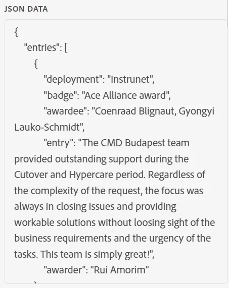 I have the template set up with repeating sections, and the JSON data is set up as an array (I think - I don't know much about JSON). This has worked in the past for me before, and I'm not sure why it isn't working now.