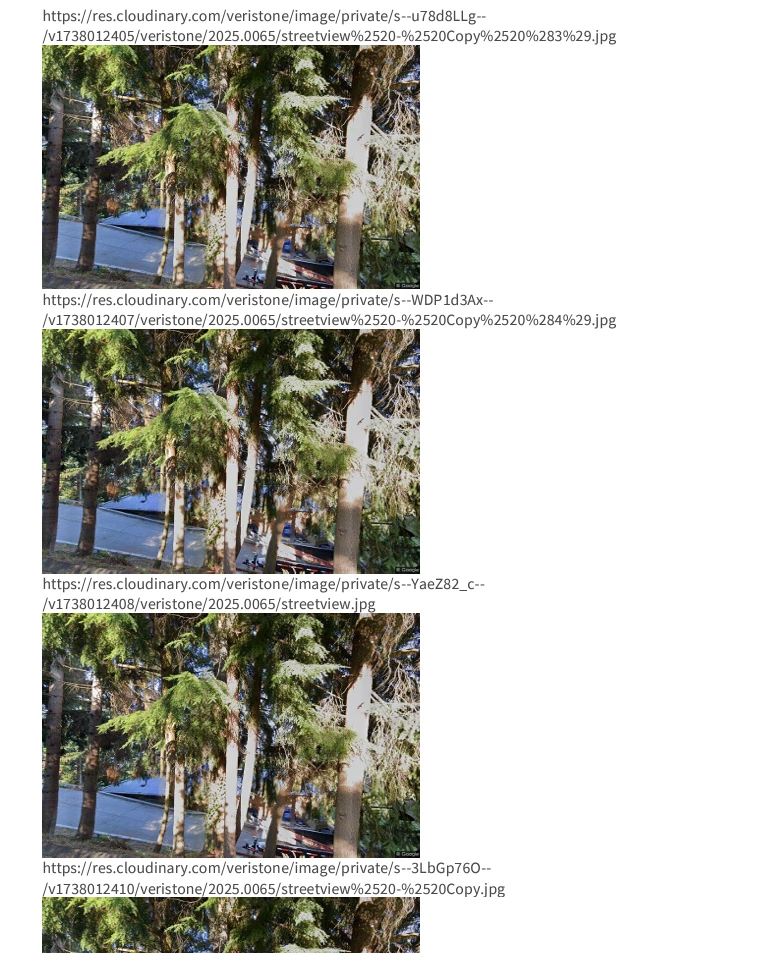 I added the url variable inside the loop just to confirm it is looping through the array. As you can see, it is only showing the first image in the array, while the urls are correct.
