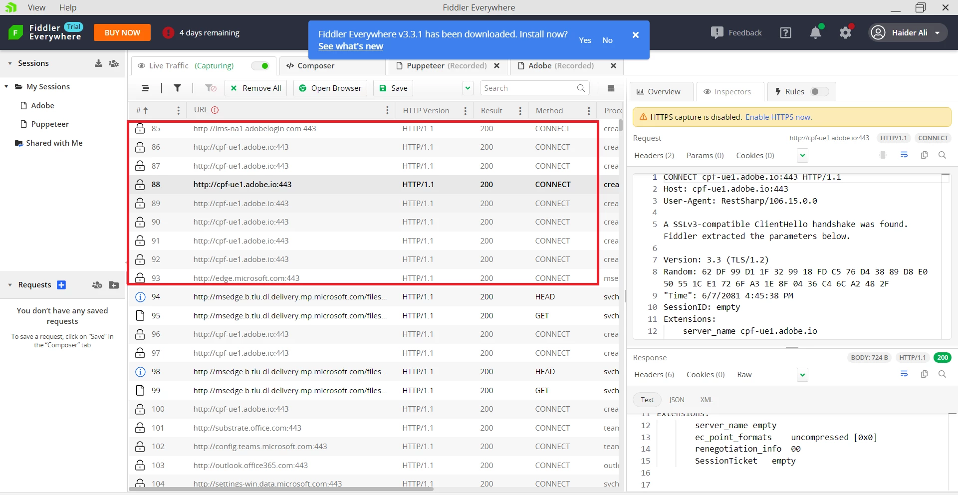 We are using using Adobe.PDFServiceSDK(2.2.1), through fiddler you have seen its background processing in which it connects with WebSocket on port 443. we just want to make sure that it doesn't post any client's document's data on its server. these are our client's privacy concerns.