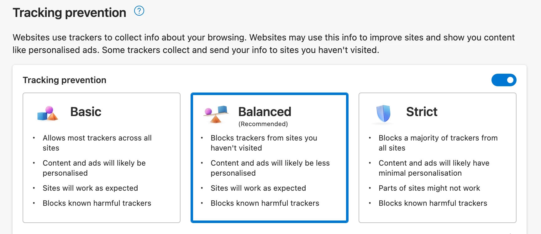 Latest versions of Microsoft Edge has a tracking prevention system edge://settings/privacy