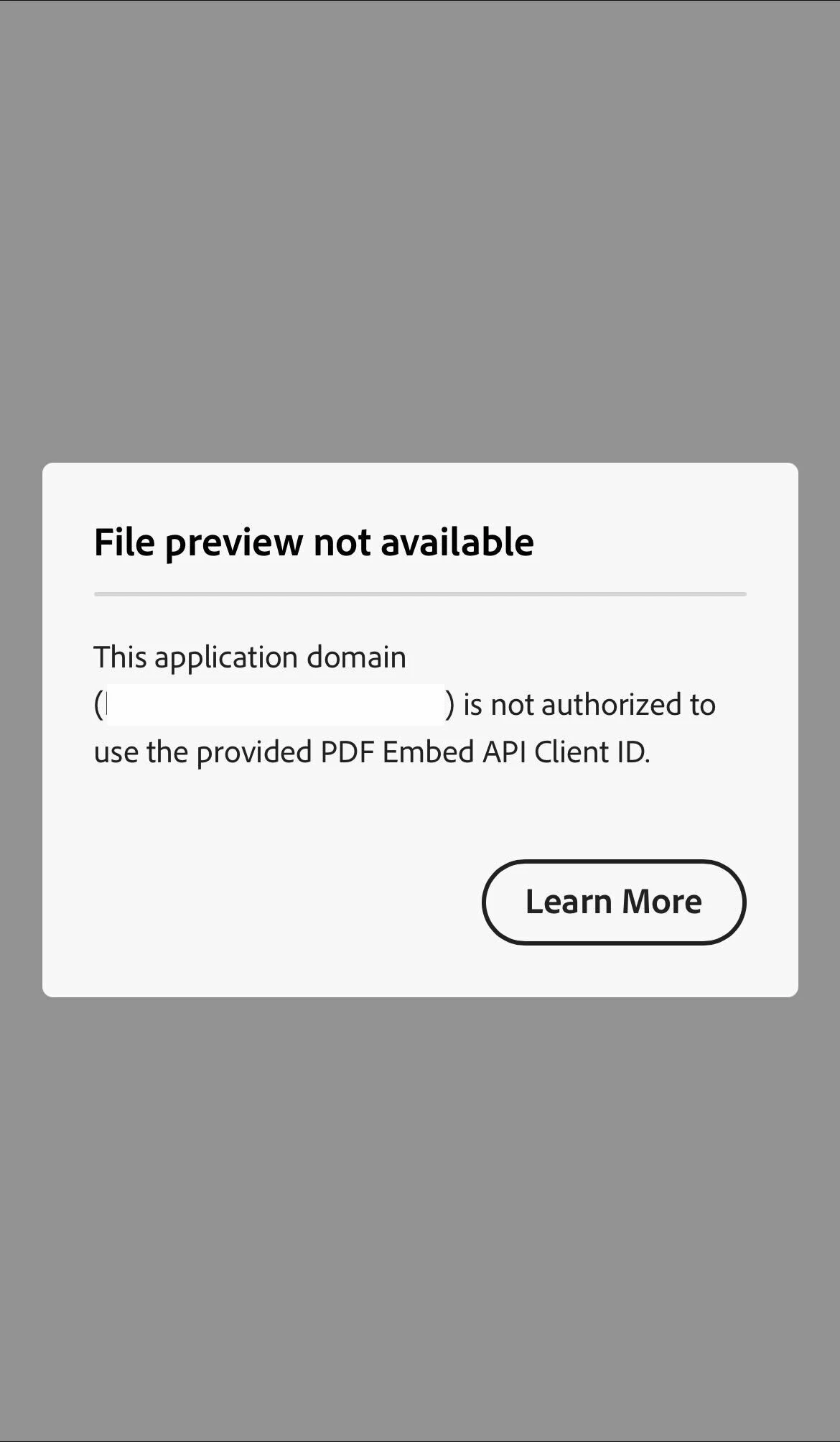 We have a display problem on IOS18. We get a popup saying “this application domain (my domain) is not authorized to use the provided PDF embed api client id”.