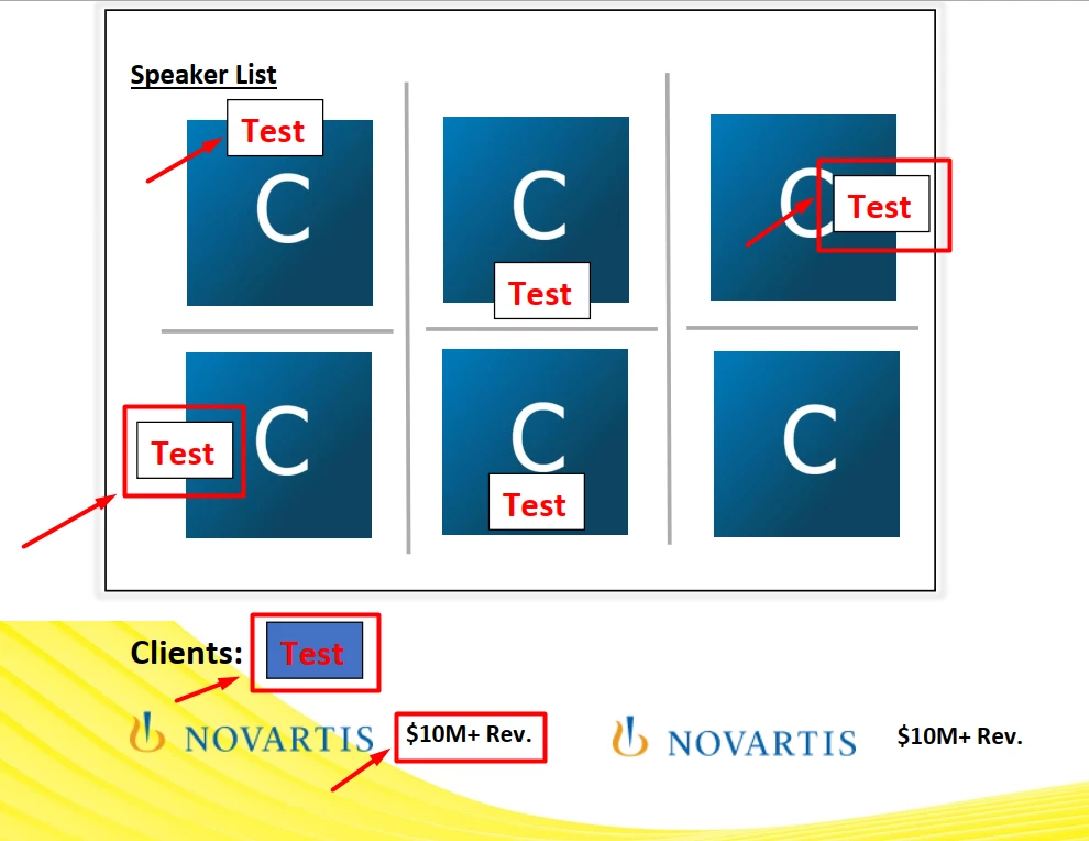 4. Text overlayed on an image (Test, $10M+ Rev) in this PDF (attached as PHT4) is extracted as a part of the image and not as text. The sections highlighted in the image are added as text. Anyway to extract them as text and not image?
