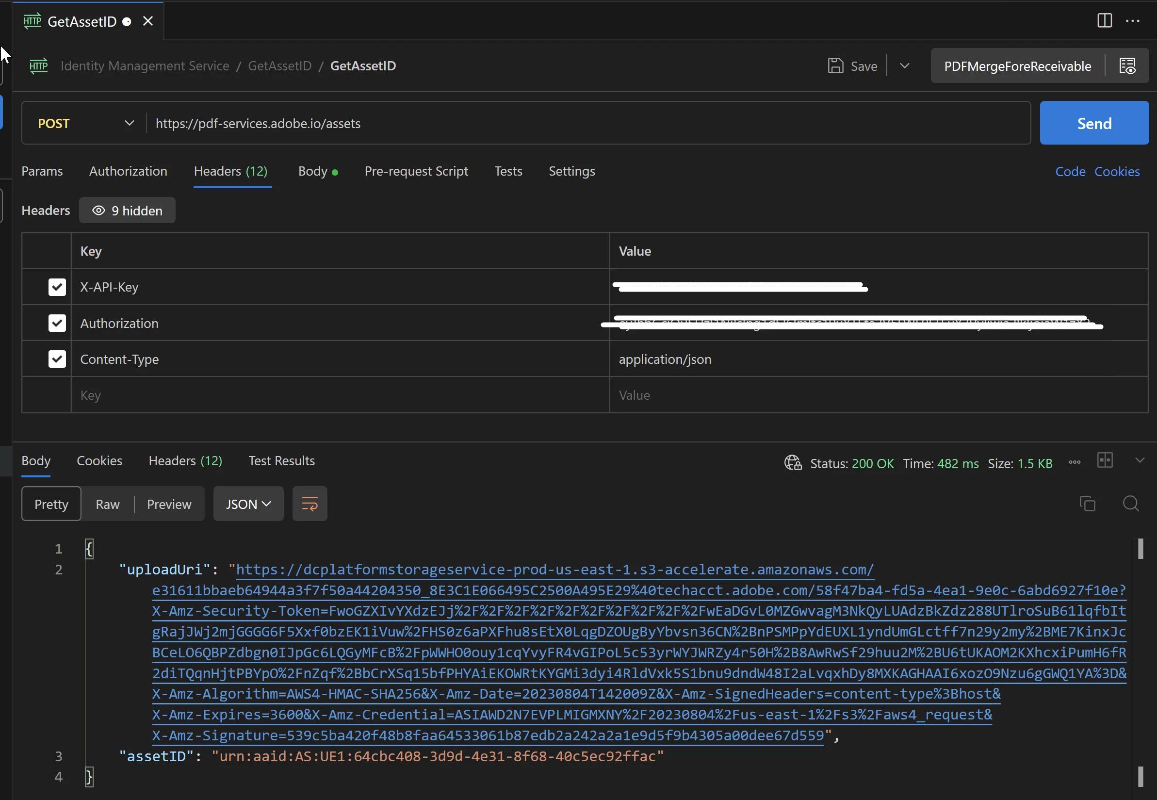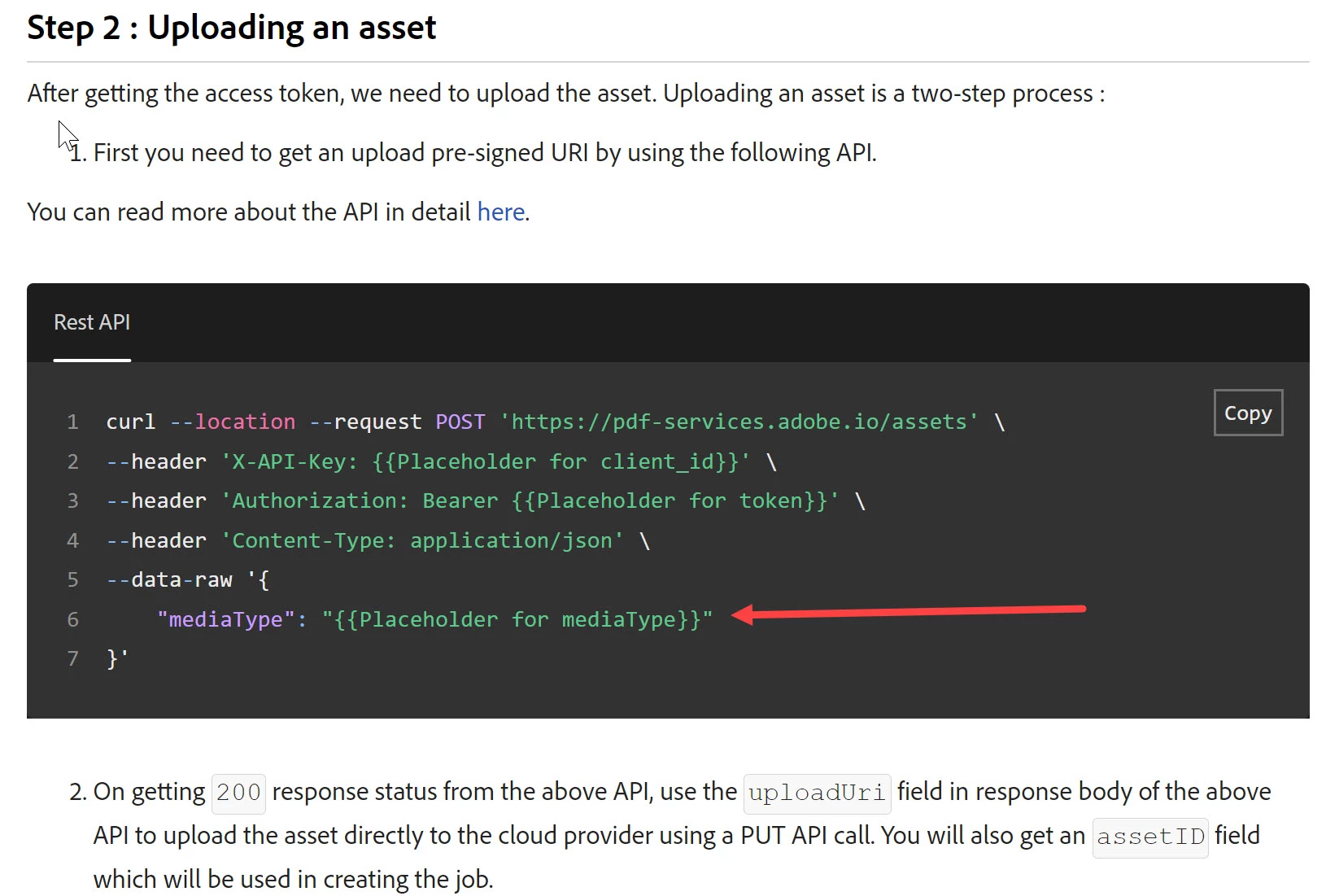 I have followed Adobe Reader API Documentation and passing MediaType as per given example. But I am getting error when Request is sent via programming. The same works when I send Request using PostMan extension in visual studio code.