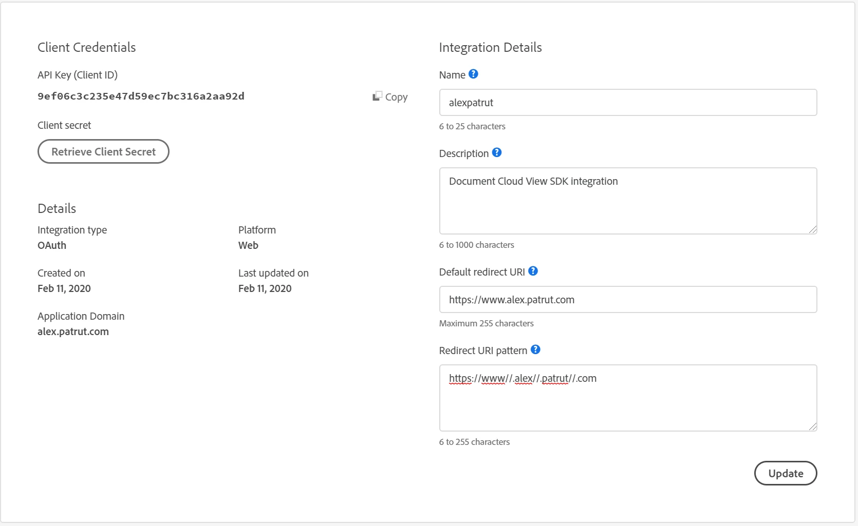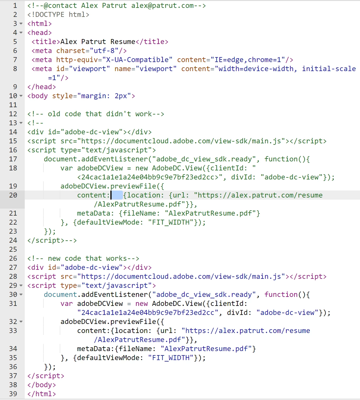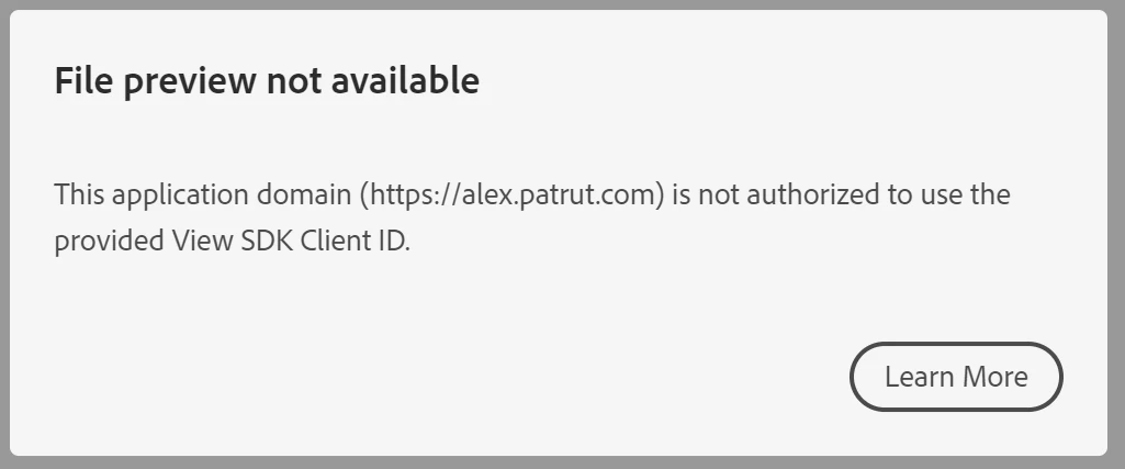 This application domain (https://alex.patrut.com) is not authorized to use the provided View SDK Client ID.