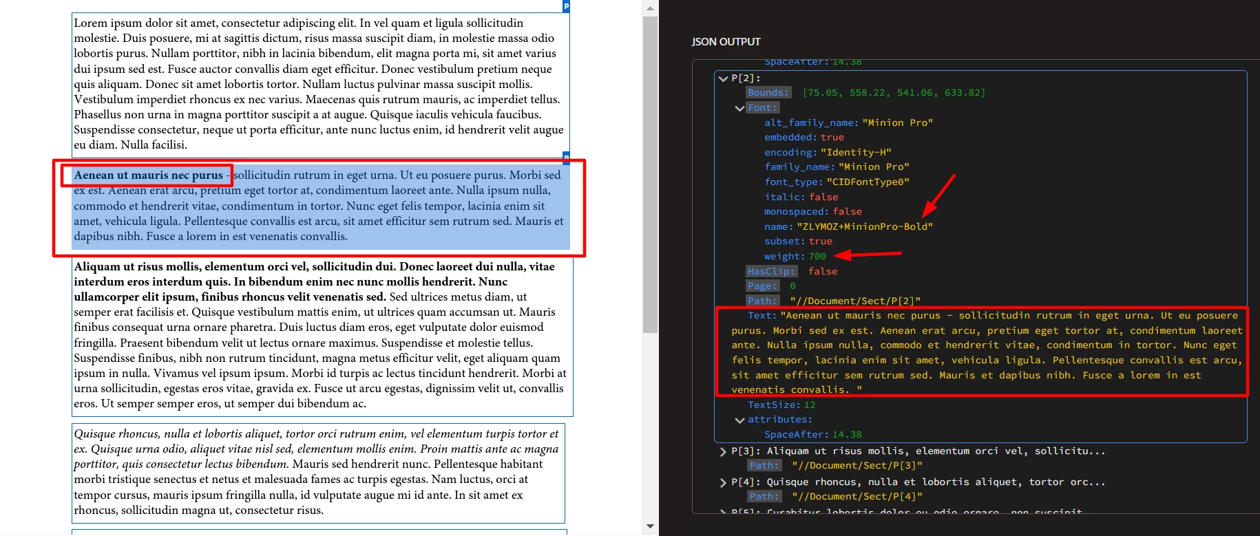 Is there any way to get multiple text styles from a paragraph? Right now if a word or sentence in a paragraph is bold or italics, the adobe extract API considers the whole paragraph as bold or italics.(Sample files attached)