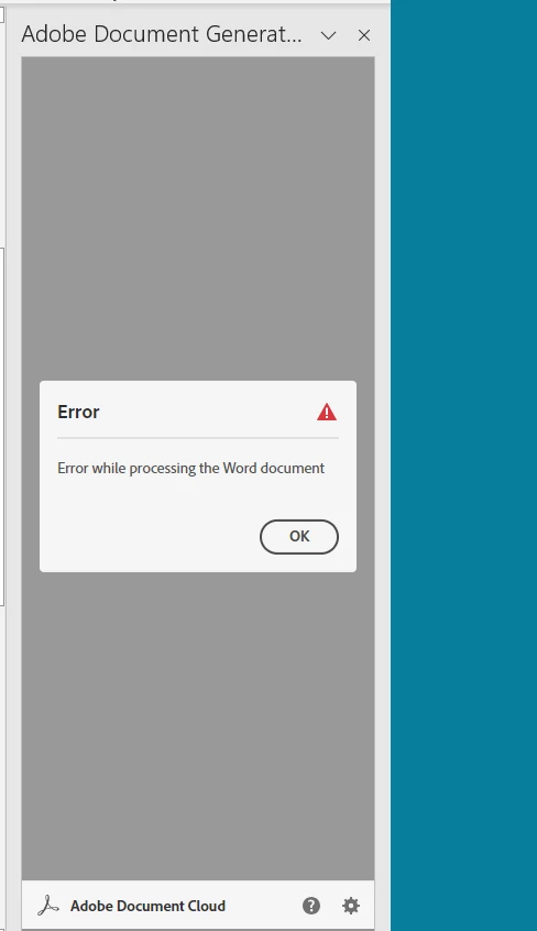 Getting error while trying to generate document using Acrobat document genertion API
