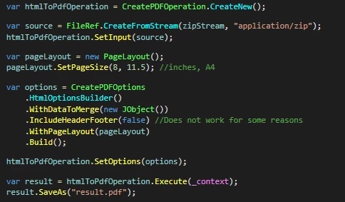 According to documentation headers and footers, which contain the date, page numbers, and source site name can be removed from the result pdf using IncludeHeaderFooter(false) option. However, it includes those headers and footers no matter if IncludeHeaderFooter is set to true or false.