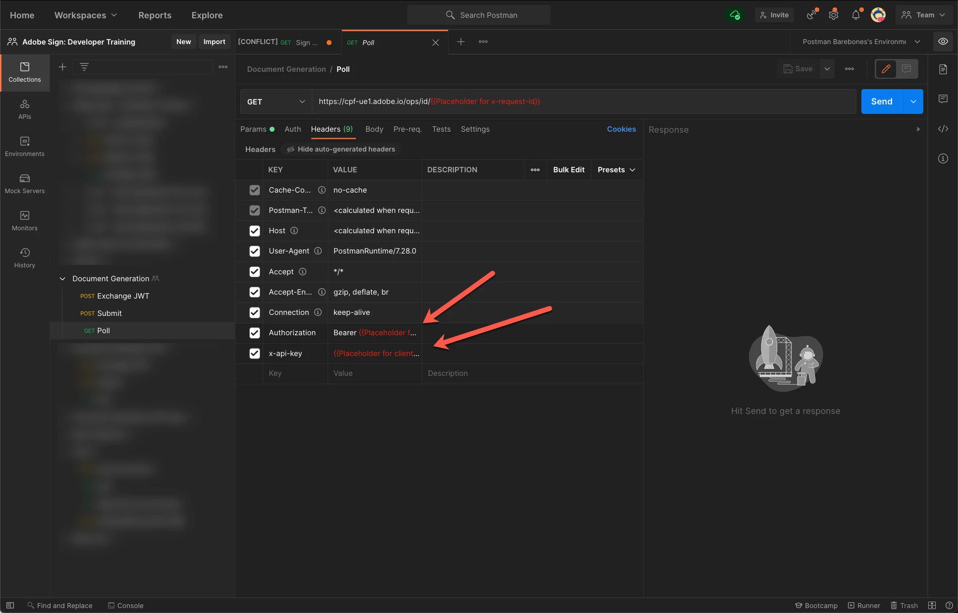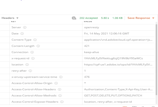 I executed the first api to create the document and it worked fine and I got a status 202 . I then used the Polling api to get the document and this one also the status is 200.
