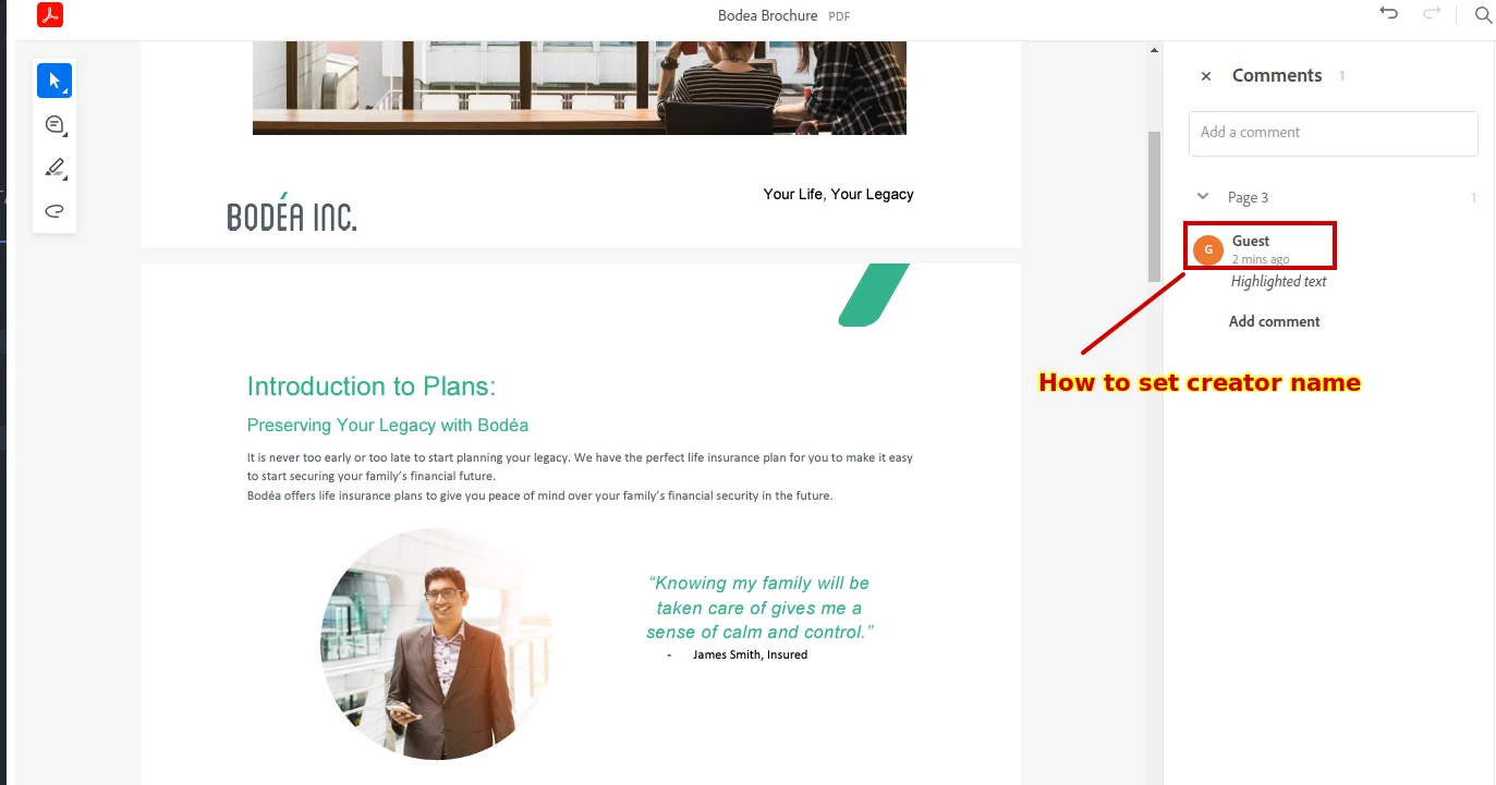 How to set creator name in annotations in PDF Embed API