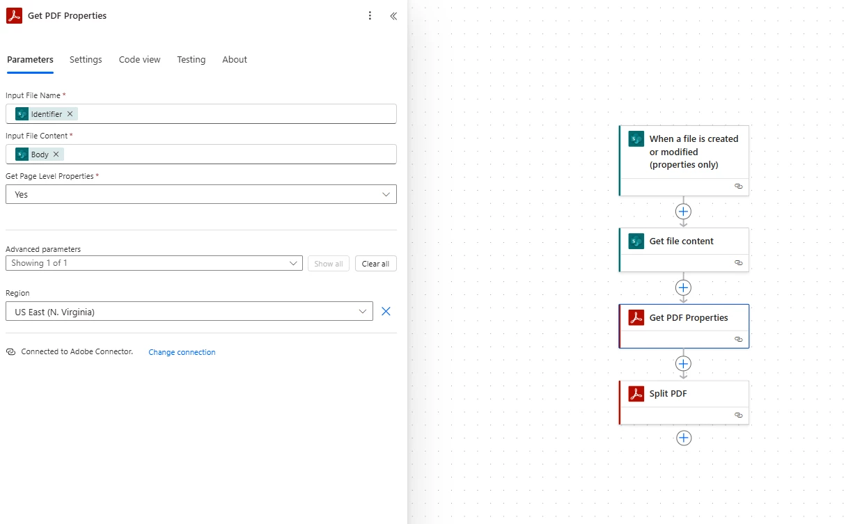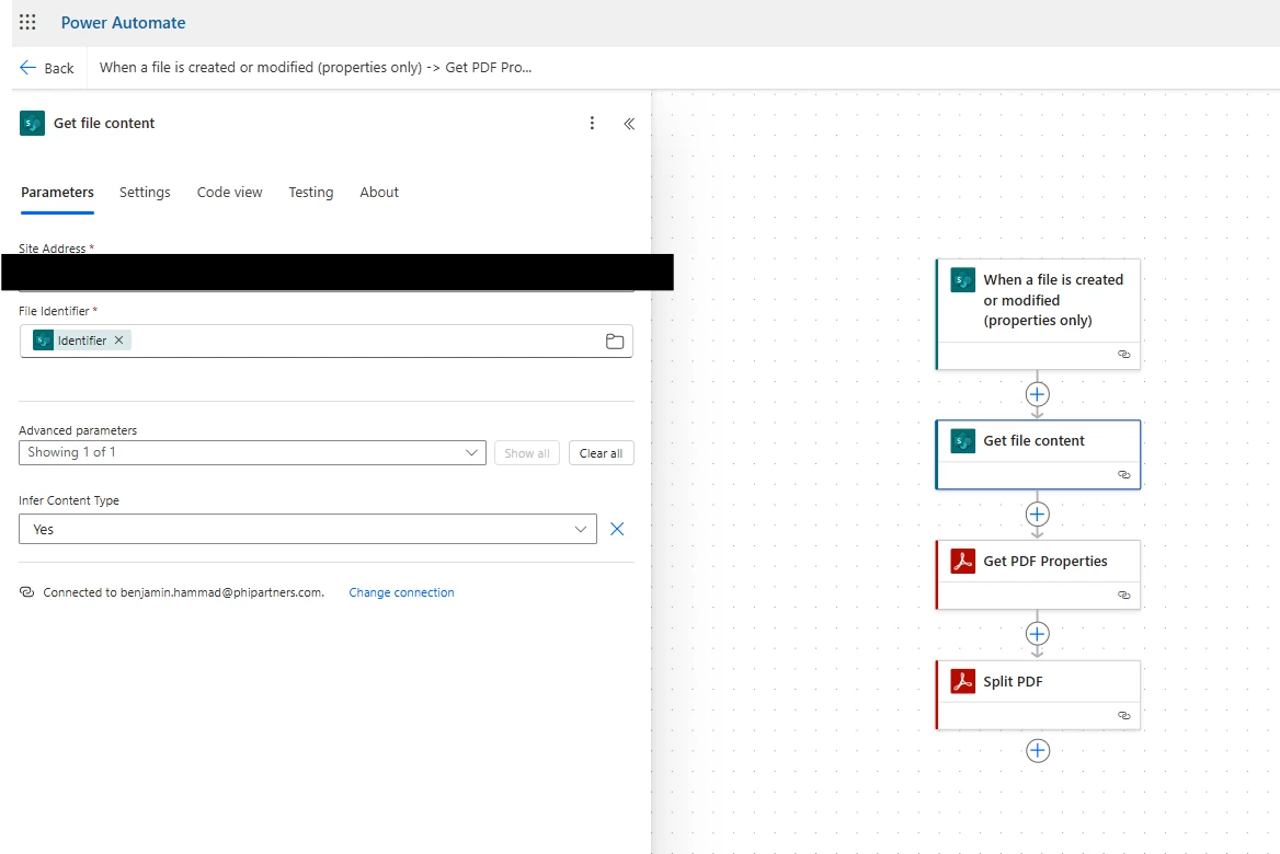 When using the 'When a file is created or modified (properties only)' trigger, I encounter an issue (as shown below), where it says the file extension needs to be PDF. However, when I check the original document, it is a PDF.
