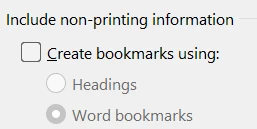 I need the existing bookmarks from Word to appear in the PDF.