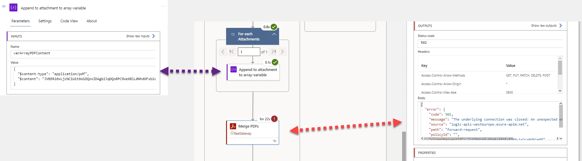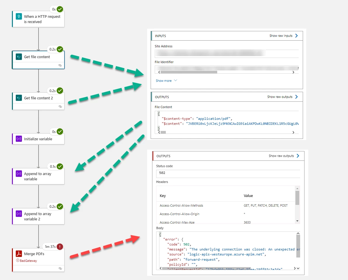 Merge PDFs in Logic app returns "The underlying connection was closed: An unexpected error occurred