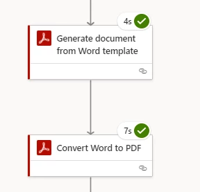 The "Generate document from Word template" and "Convert Word to PDF" works fine: