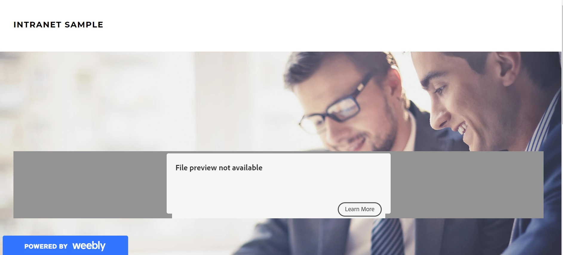 I am having trouble getting the PDF embed API to work on my site. I keep encountering the message "File Preview Not Available" with any PDF file I try. The domain is a test site I created with Weebly https://corporatesampleintranetpage.weebly.com/.