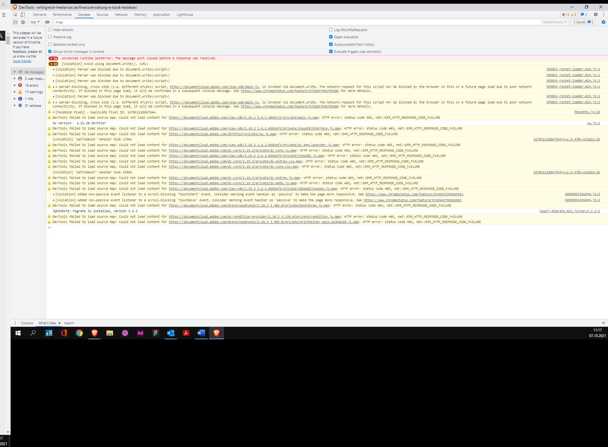 2. When the WP-Rocket Cache Plugin is deactivated, I see the PDF, BUT I get a bunch of parsing violation and error messages: