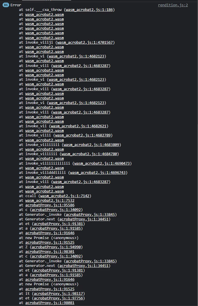 Hello, I'm attempting to use the PDF embed API to view files in an Angular application. Most of the files render completely fine, but mainly redacted files seem to not render properly. I’ve added both an original and a redacted version of a file that renders incorrectly. If you open the redacted version in for example the Adobe PDF Embed API Demo (https://documentcloud.adobe.com/view-sdk-demo/index.html) you’ll see that it doesn’t render and when you open the dev-tools, the console is full of errors. The stack-trace can be seen here: