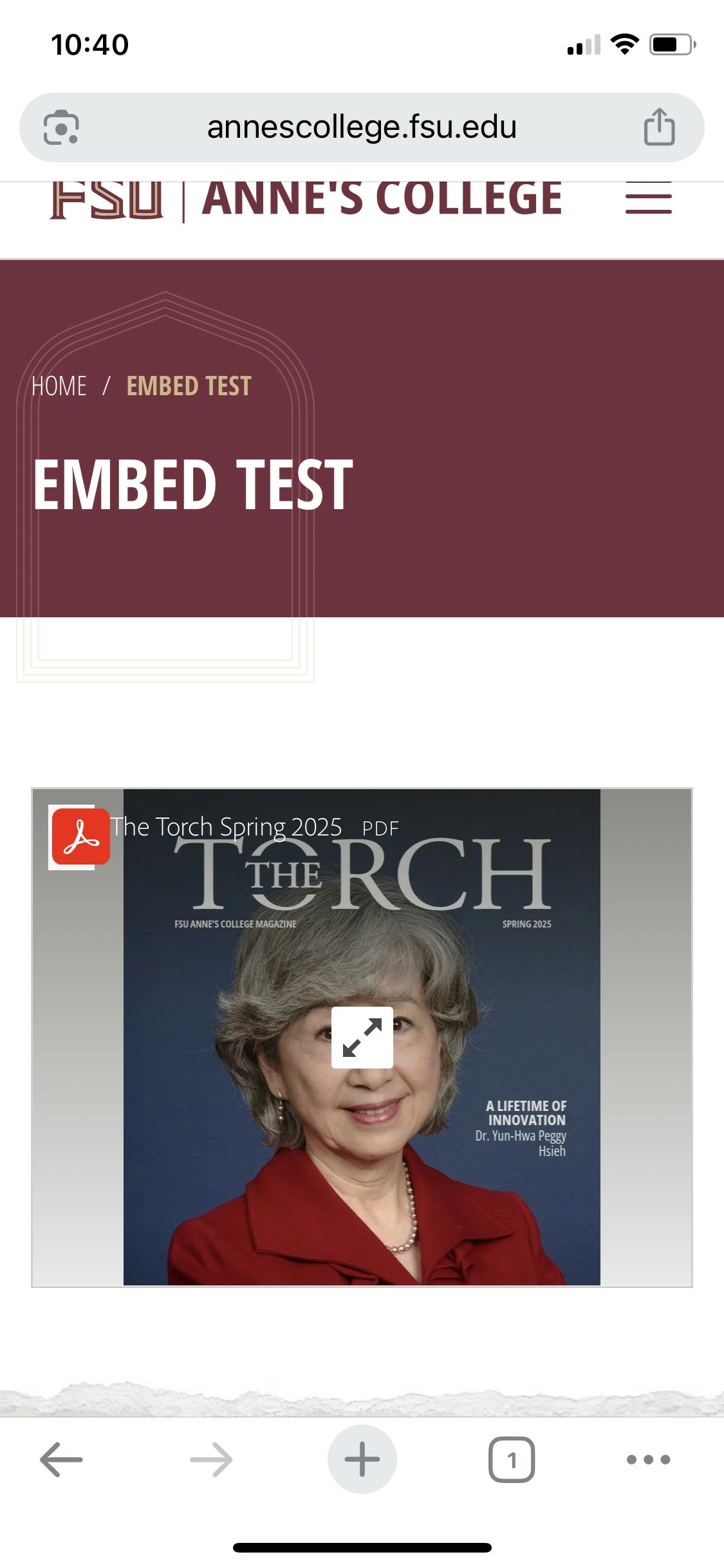 Hi there! I'm trying to get the Embed API set up on our site, but I'm running into some issues. It seems like it works the first time you open the page, but on reload, it disappears sometimes. I have it set up here: https://annescollege.fsu.edu/embed-test