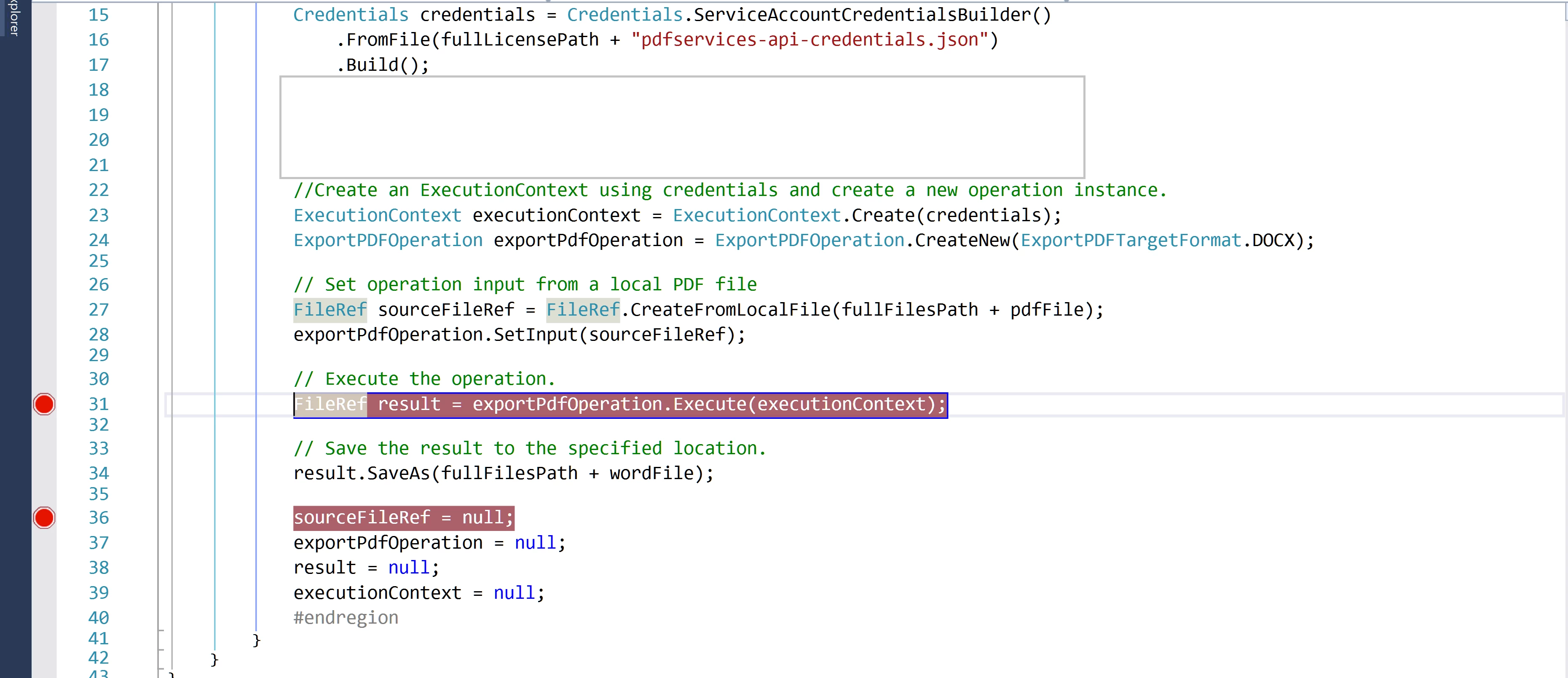 FileRef result = exportPdfOperation.Execute(executionContext);and the word file doesn't get generated any longer, this was working previously. Please help on this, as our functionality is currently non-functional due to this.