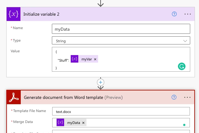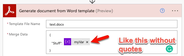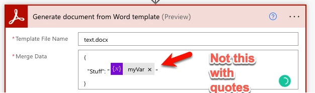 Power Automate INVALID PARAMETER - Generate Document from MSFT data and word template