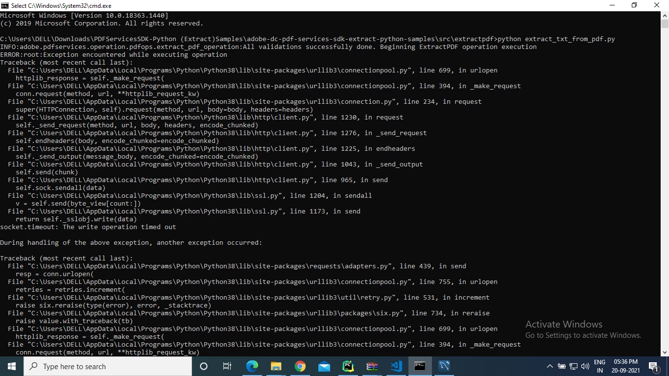 In which I m converting my pdf to text by using the "extract_txt_from_pdf.py" program which is in pdf service SDK. But actually, problem is that I have multiple pdf' which are in the same format but some of them is converting to pdf text and some are not all pdf content same format I didn't know why it is an actual happening