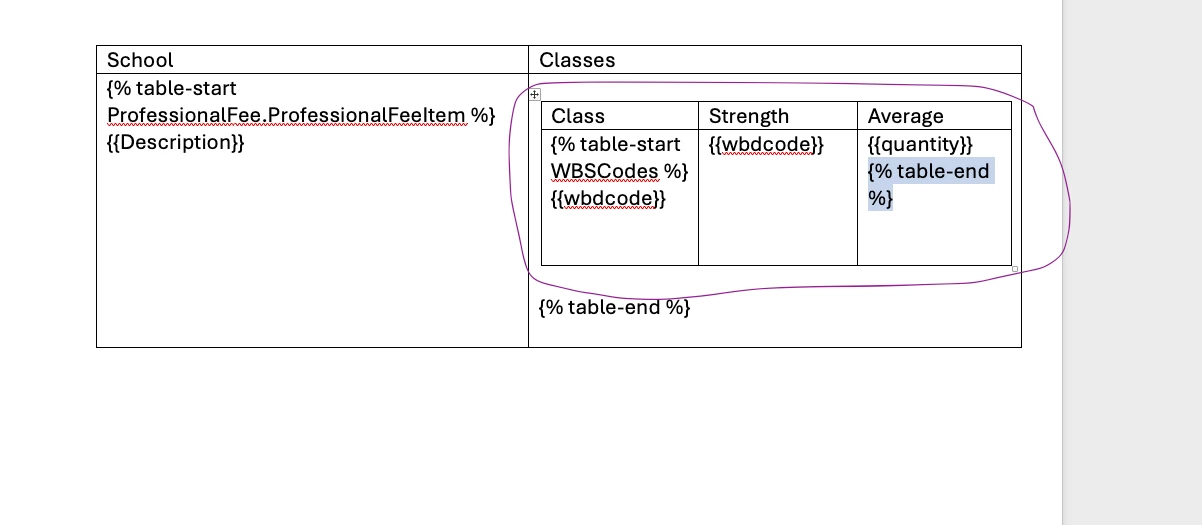 What tag should we applpy in order to display the inner table conditionally? The inner table should display only if the array WBSCodes is there in the json.