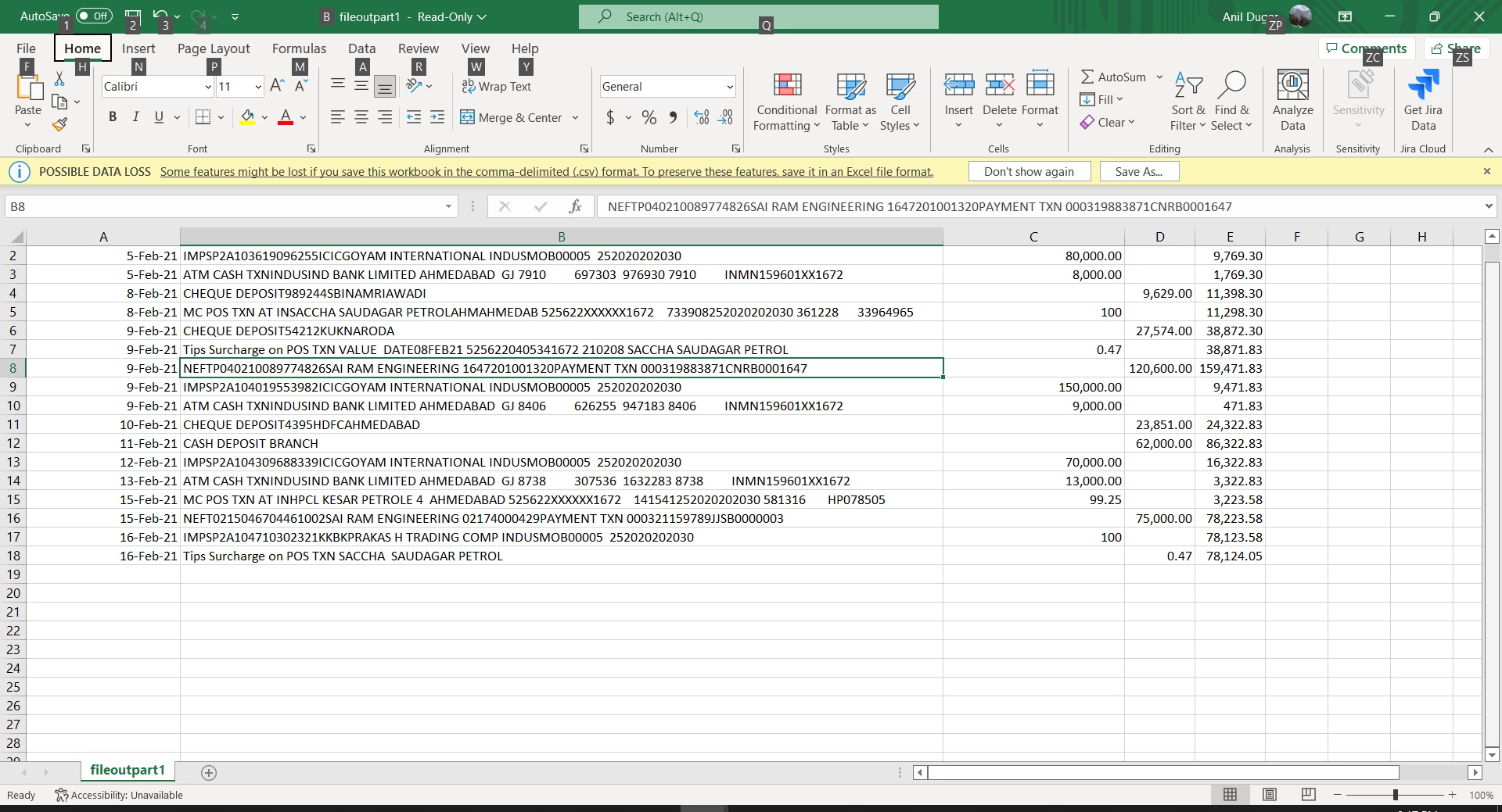 Error CSV : expected are 6 columns but only 5 are being shown in the csv