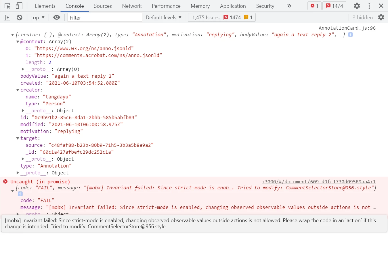 I wish to use the annotation manager's interface to update a replying annotation. But I'm getting this error: