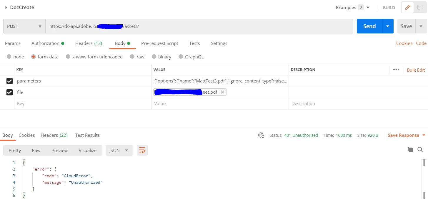 Upload a Document to ADOBE Document cloud from API