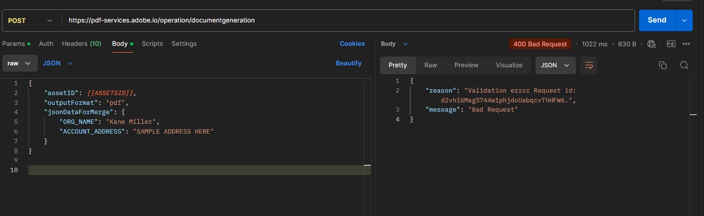 "reason": "Validation error Request id: d2vhiGMagS744w1phjdoUabqcvThHFW6.",