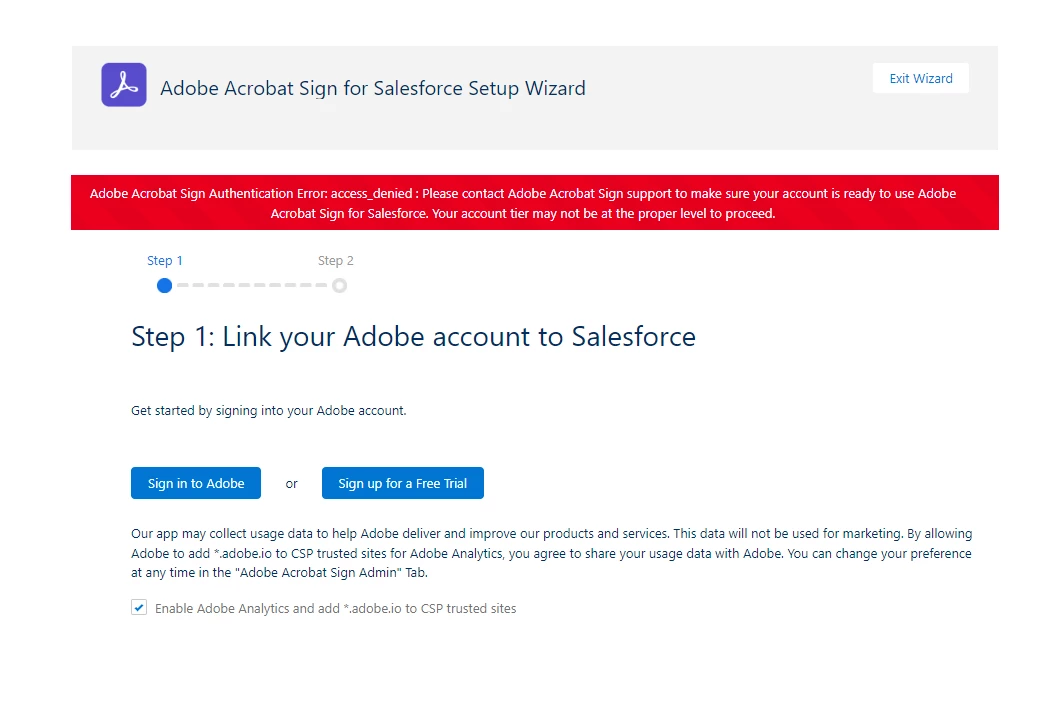 Adobe Acrobat Sign Authentication Error: access_denied :