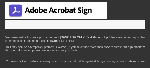 I have an issue where i'm uploading a pdf as a transientdocument. After i get the id and then use it in creating an agreement. Shortly after i get this mail: