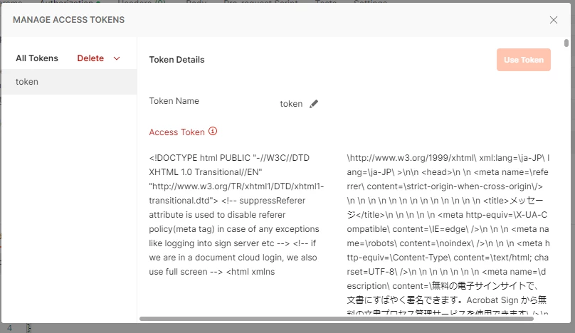 The response you are showing in the screenshot is HTML code which tells me that your request URL is probably not correct.
