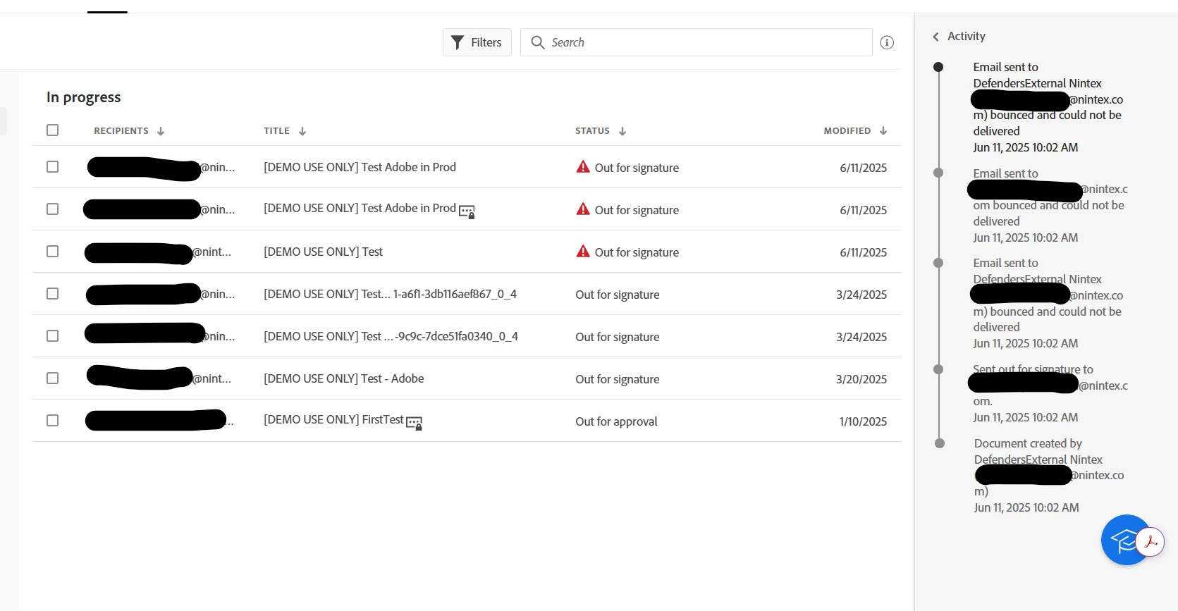 Expecting 'REJECTED,RECALLED' but was 'EMAIL_BOUNCED'