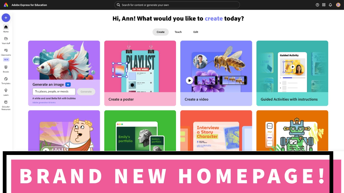 Have you seen the redesigned Homepage when you launch Adobe Express for Education?
