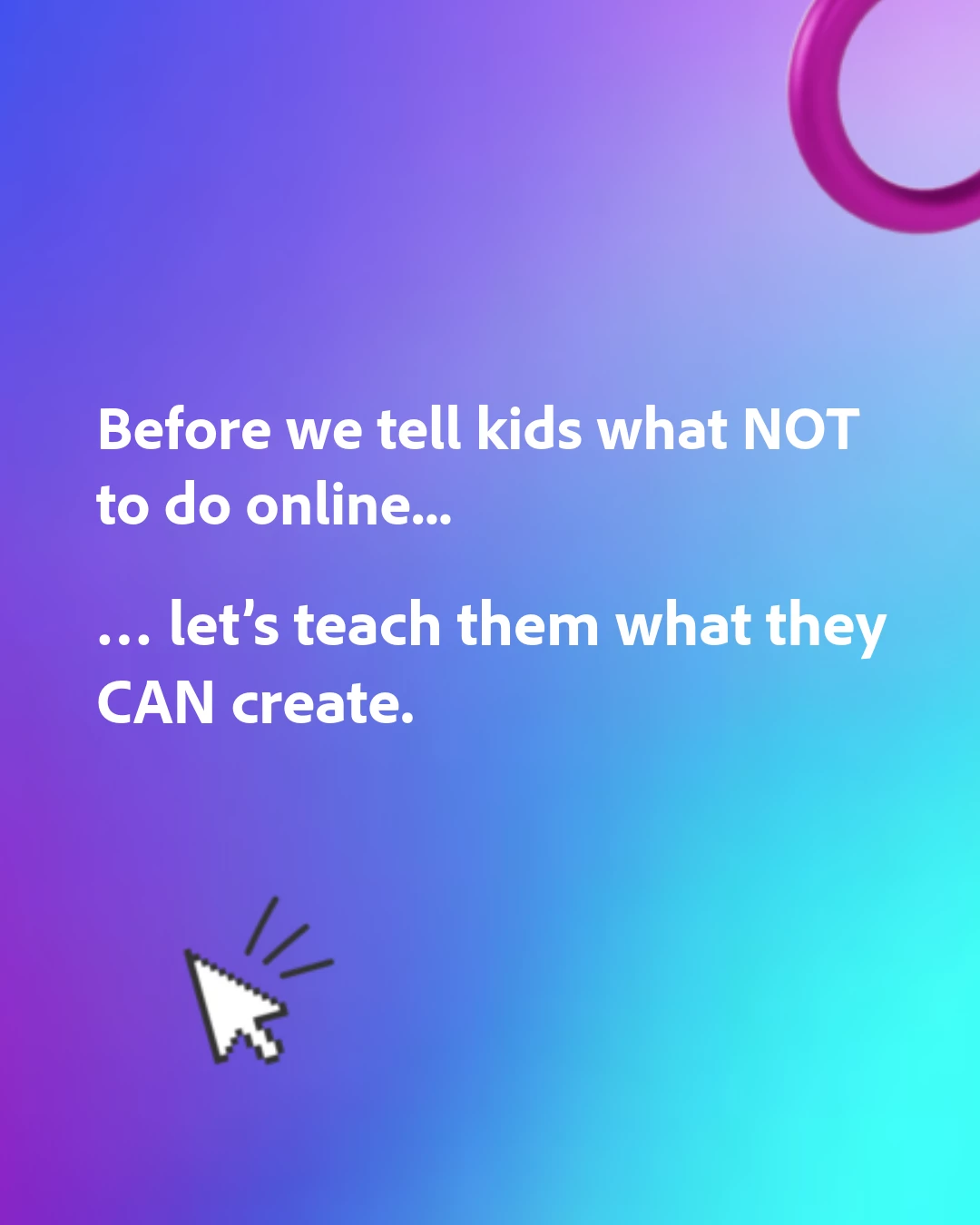 Both as a mom, Adobe Edu employee, and former K & 4th grade teacher, I think a lot about how our kids show up online, including what they post, how they treat others, and how they make sense of the world that’s constantly shaping them.