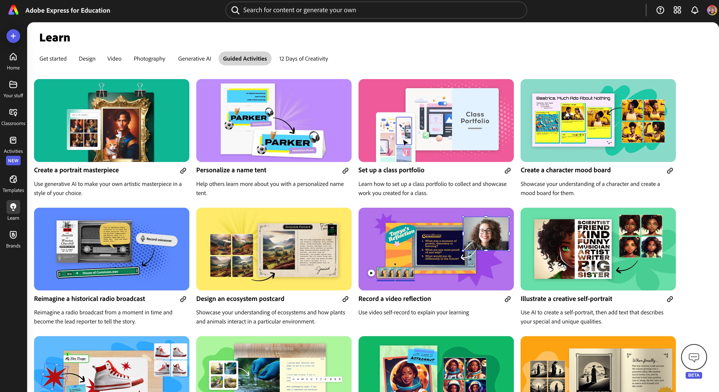 3) Guided Activities are Easily Integrated into Your Adobe Express Classroom Workflow