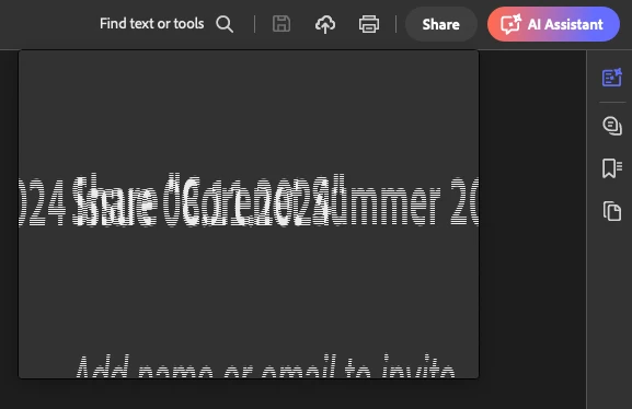 Acrobat Pro 2024: IU cannot make a link to share the file; there seems to be a "screen bug" when I click on the Share button.