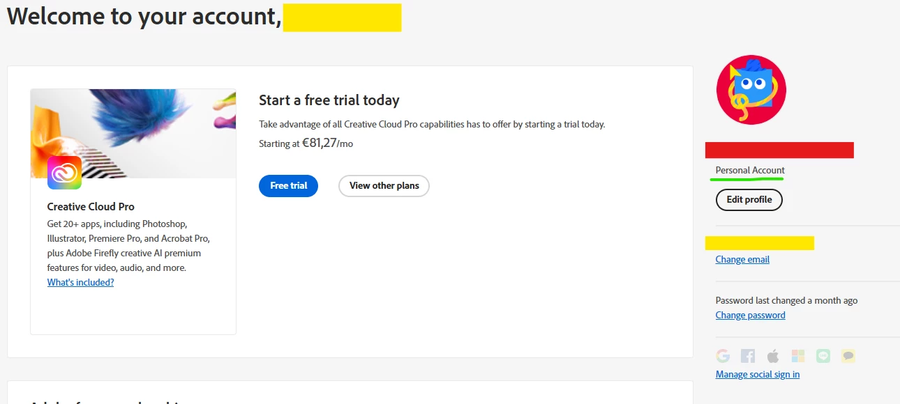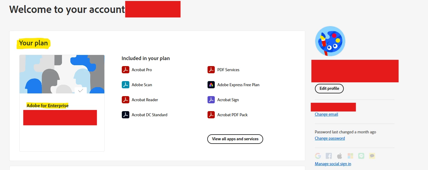I’m using my company’s enterprise account, but when I try to manage my account from:
