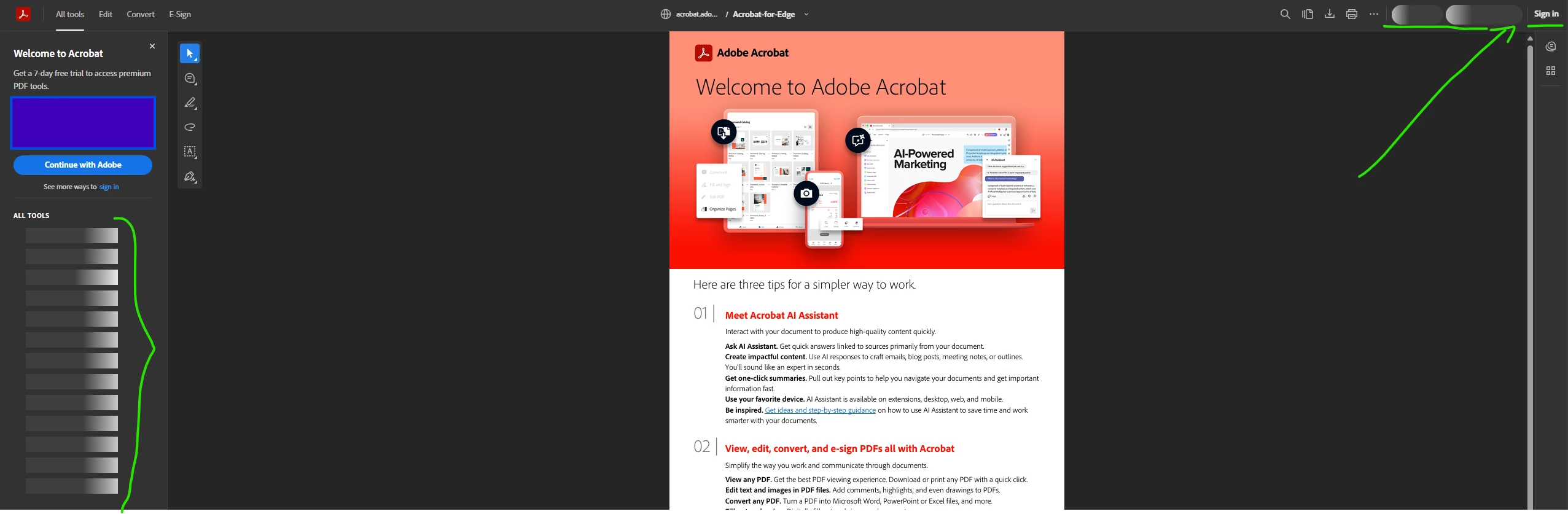 Acrobat Web-Browser Extension - Buttons keep loading