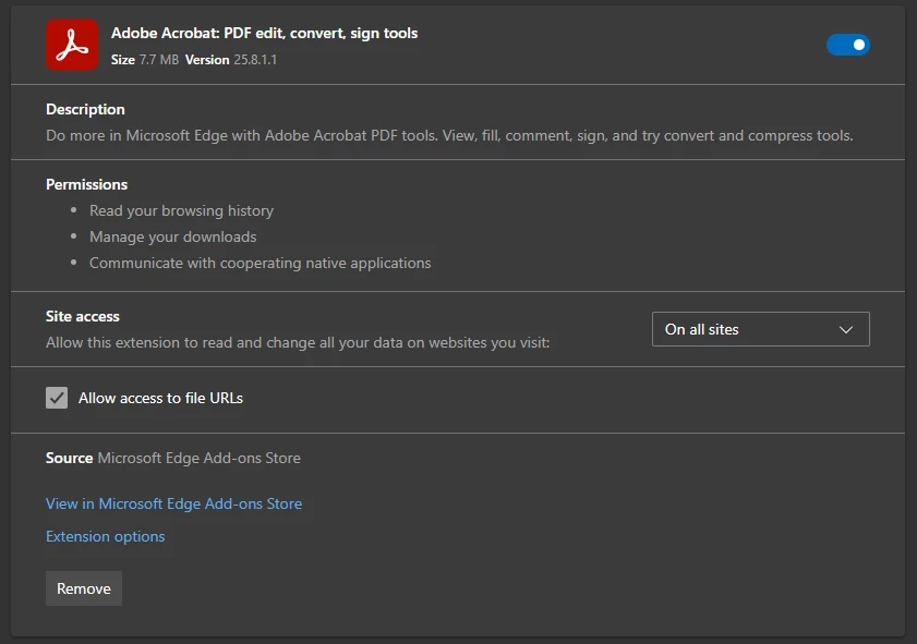 I installed the latest version of the Acrobat web browser extension on both Edge and Chrome, but the buttons keep loading without displaying any content.